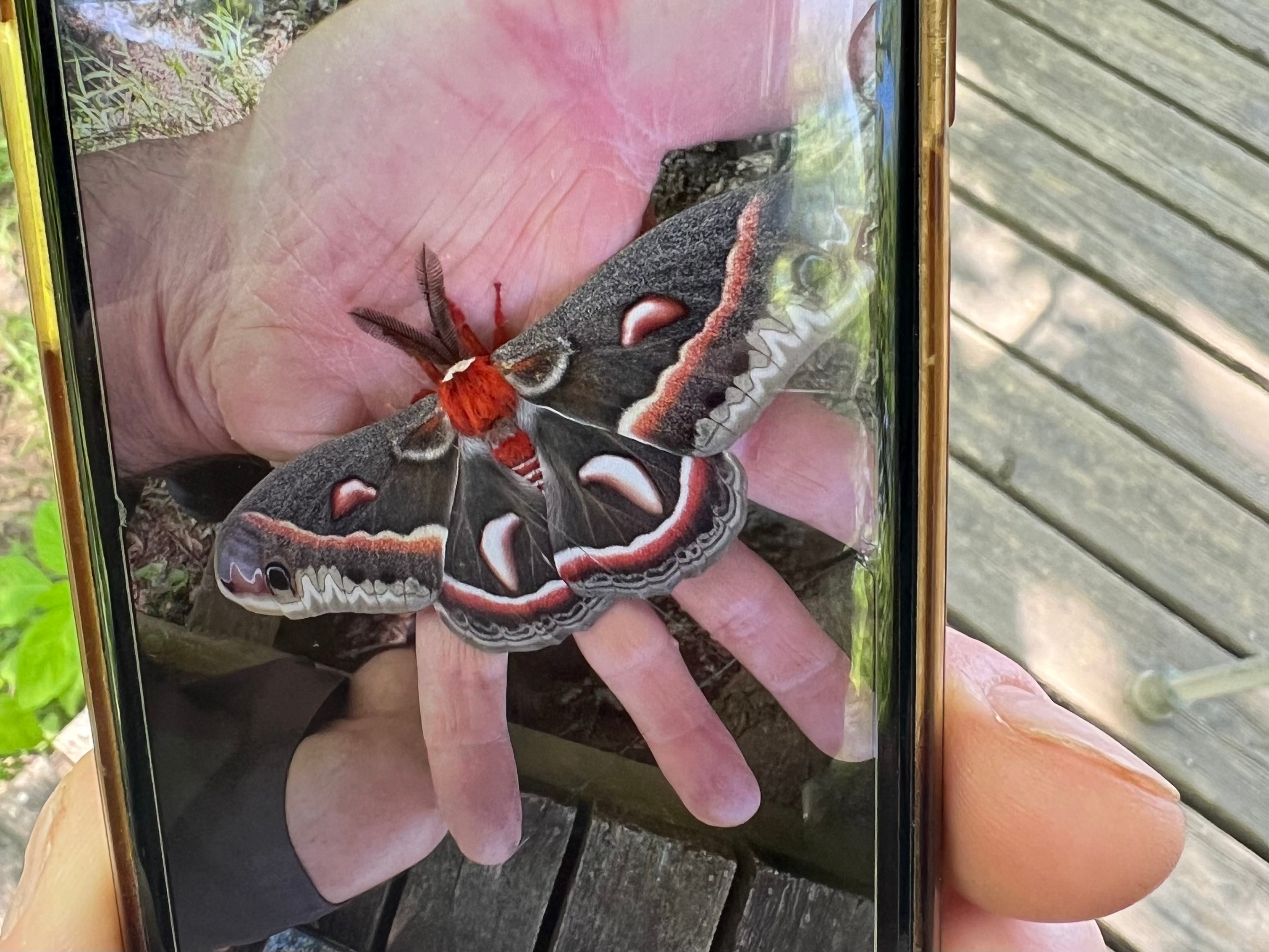 I also visited some of my favorite natural spots. At the Beaver Lake bird sanctuary, I didn’t spot anything too exciting or photo-worthy but was delighted to partake in another man’s joy over seeing a cecropia moth emerging from its cocoon near the base of a large tree. (He named it; I wouldn’t have been able to pick it out of a lineup. And naturally its name is Greek-derived.) Probably because he noticed the camera around my neck, he led me over to the site, but the moth was gone. Instead I asked to see his picture and for permission to take a photo of it with my phone. I’ve never seen one in person, but wow. I was thrilled for him. I know what it’s like to have that kind of unexpected encounter.