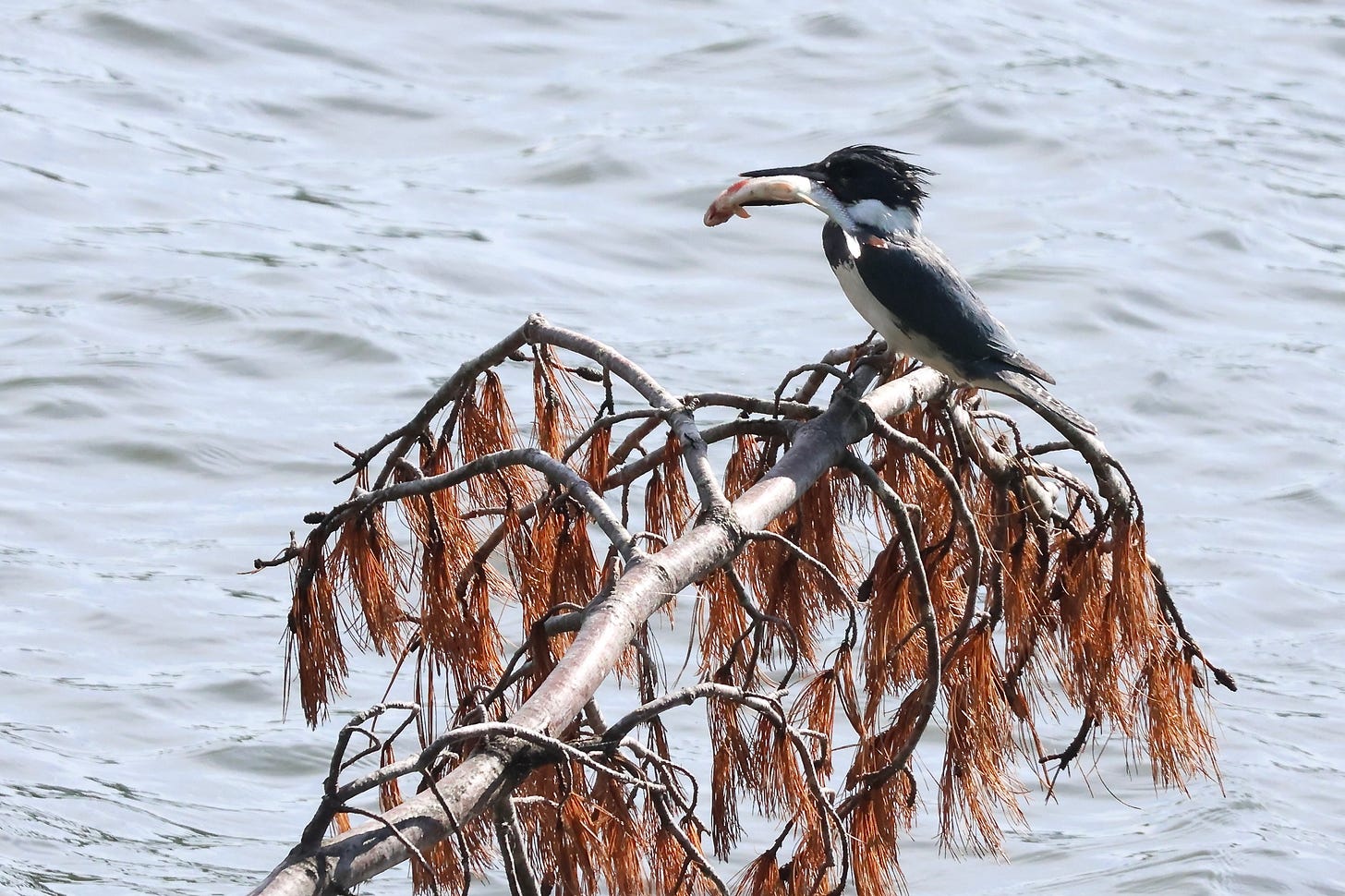 On a subsequent lake visit I saw the first belted kingfisher I’d seen in ages, and with a prime prize in its beak.