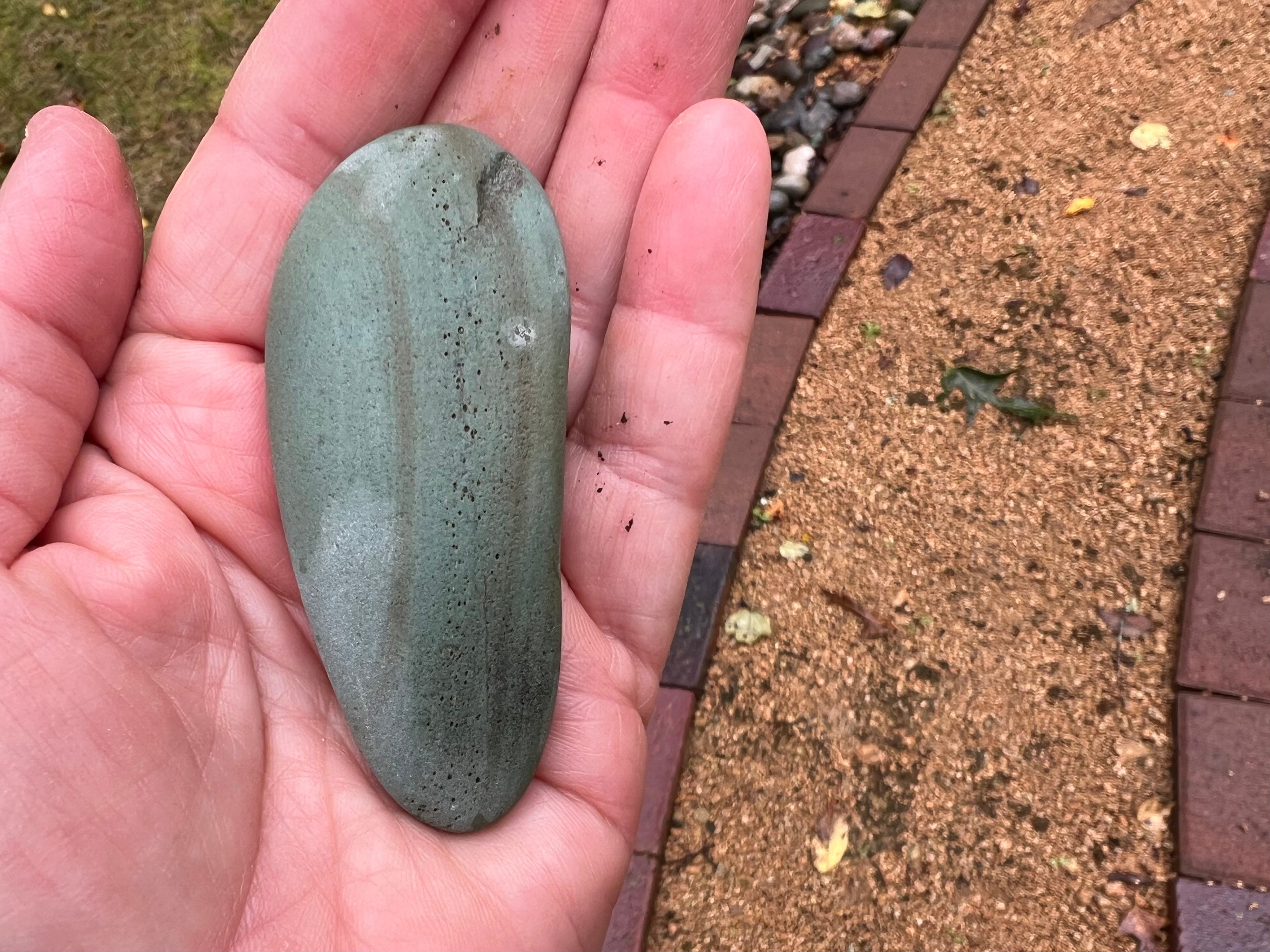While walking in the labyrinth on Sudie’s lovely property, in isolation but with others, I watched as some folks picked up leaves and rocks along the way. I wondered if they were going to keep them or put them back. I myself held one of the unusually jade-colored stones sprinkled along the outer border for part of my journey within the maze, knowing I was going to put it back on my way out.